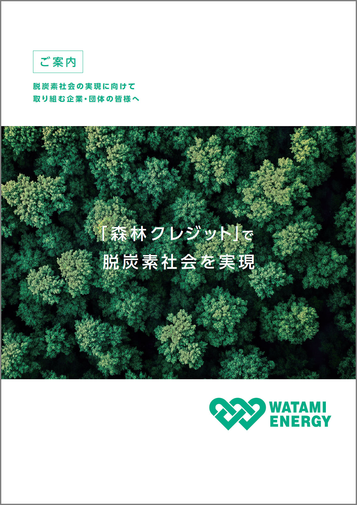 ワタミエナジーでは、2025年2月より、陸前高田市で適切に管理された森林が吸収したCO₂量を価値化した「森林クレジット」の販売を開始しました。これにあわせて、森林クレジットの仕組みや活用方法をわかりやすくまとめたご案内パンフレットを作成しましたので、こちらでご紹介いたします。